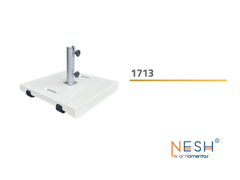Base de chapéu quadrada, em betão natural branco, com 2 rodas, com acabamento liso.