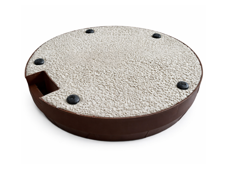Base de chapéu redonda, em betão com cobertura em plástico. (incluido: tubo e 2 peças de aperto)