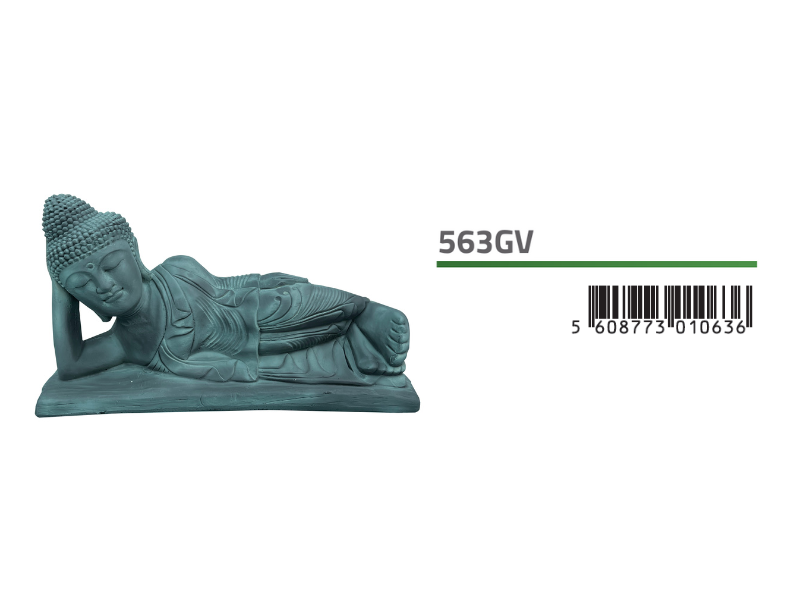 | Ref. 563GV | Buda deitado - Pintado Esmeralda | 66x25x35cm | 39Kg |