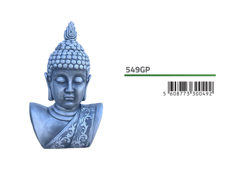 | Ref. 549GP | Cabeça de buda - Pintado Prata | 28x18x48cm | 18Kg |