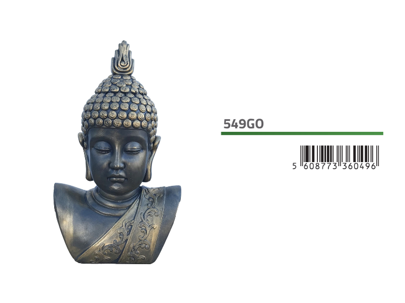 | Ref. 549GO | Cabeça de buda - Pintado Ouro | 28x18x48cm | 18Kg |