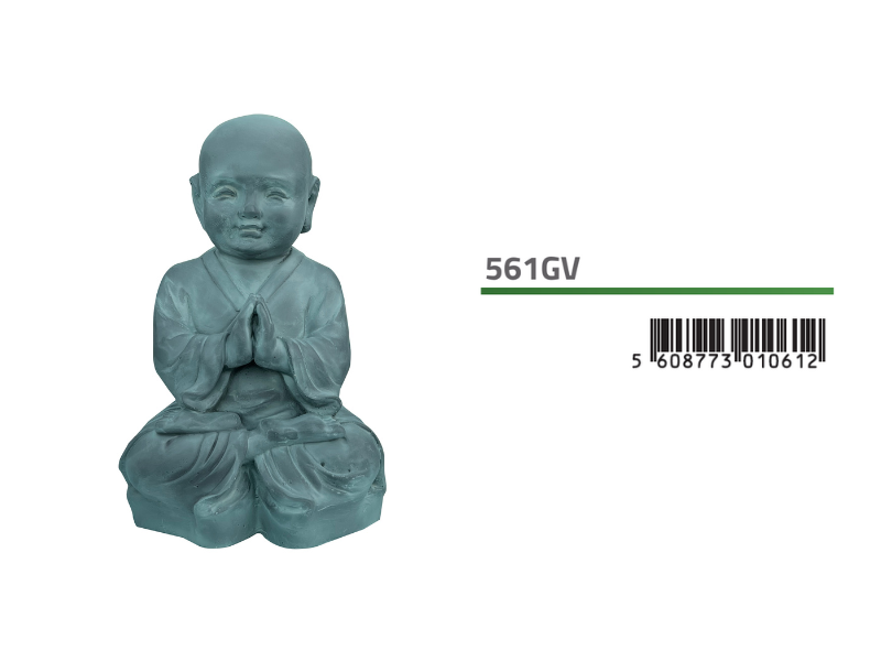| Ref. 561GV | Menino buda a rezar - Pintado Esmeralda | 28x22x45cm | 19Kg |